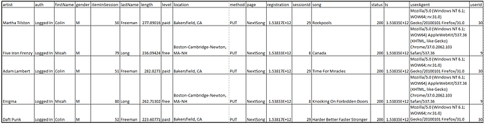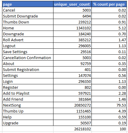 Il dataset fornito è sostanzialmente composto dal log di ogni azione dell'utente sulla piattaforma. Ogni azione è contrassegnata da un timestamp ts