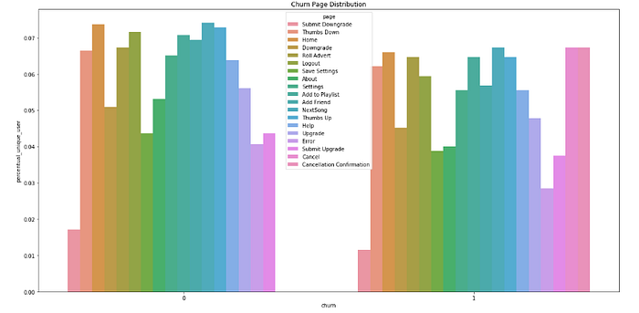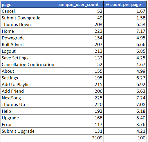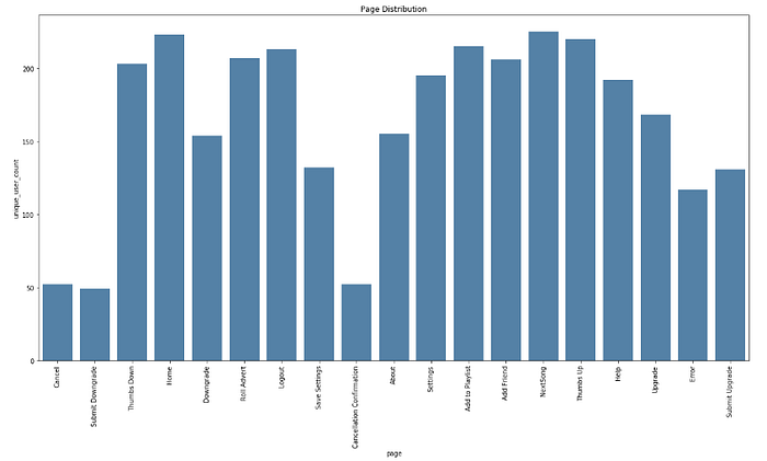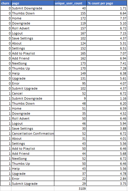 Quindi ho definito una nuova colonna Churn che verrà utilizzata come etichetta per il modello. Fondamentalmente, se un utente ha mai visitato la pagina di Cancellation Confirmation, lo contrassegneremo come abbandonato. Ovviamente questo evento può verificarsi sia per gli utenti paganti che per quelli gratuiti.