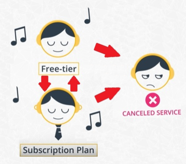 Sparkify è un servizio di musica digitale che può essere utilizzato gratuitamente ascoltando qualche pubblicità tra le canzoni o pagando una quota di abbonamento mensile per avere un'esperienza senza pubblicità. In qualsiasi momento gli utenti possono decidere di effettuare il downgrade da premium a free, l'upgrade da free a premium o la cancellazione dal servizio.