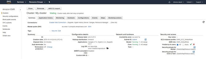 Come suggerito da Cloud Deployment Instructions for DSND Capstone Project, ho creato un cluster con AWS