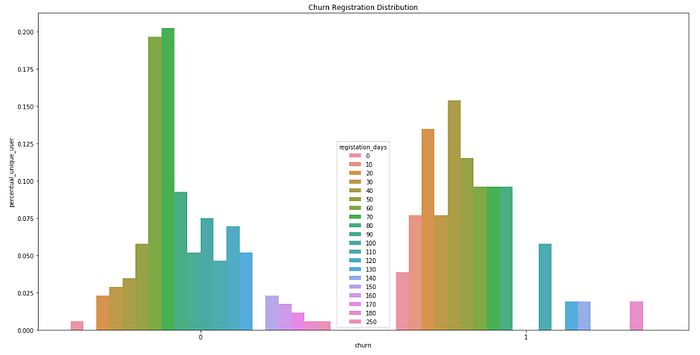 Distribuzione dei giorni di Churn Registration nel piccolo set di dati